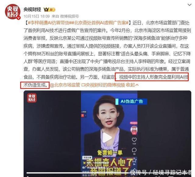 五 这次,国家终于出手。 北京市监局、公安、网信办三部门联合行动,查封了十余个假直播账号。 幕后公司被揪出。 从“李梓萌”到“全红婵”,再到某位“中科院博士”, 他们靠一键生成的“虚拟人”,赚得盆满钵满。 但更可怕的,不是技术,而是信任被算法包装后的 “新骗局” 。